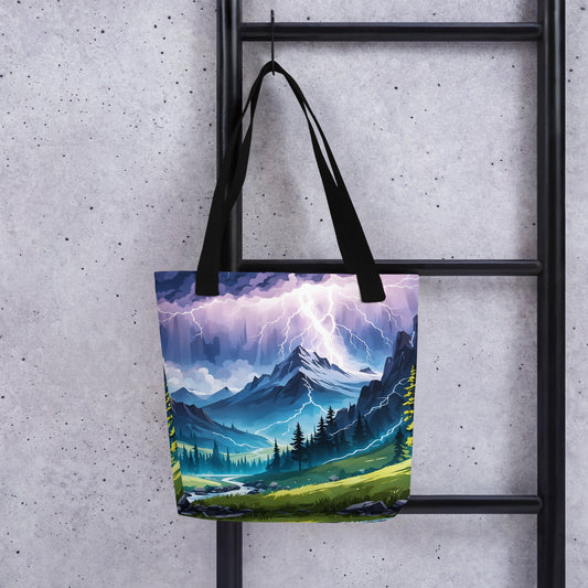 Lightning Over Mountains Tote Bag