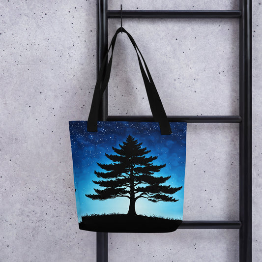 Tree In Night Sky Tote Bag