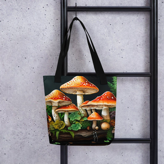 Purple and Red Mushrooms Watercolor Art Tote Bag