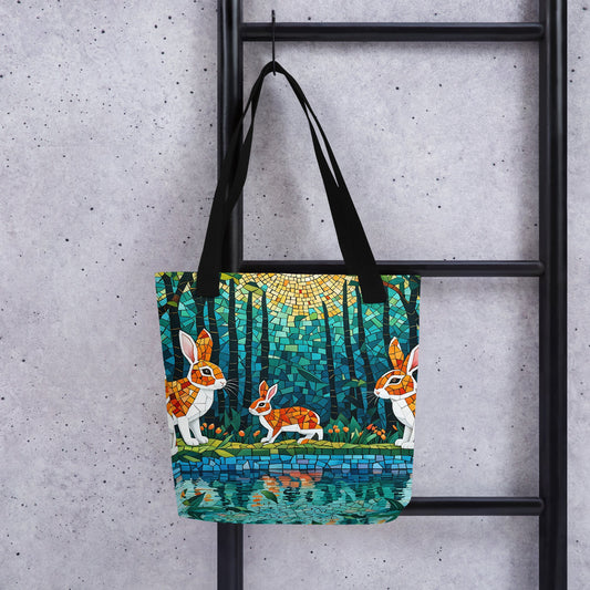 Mosaic Bunnies In The Forest Tote Bag