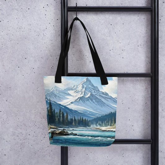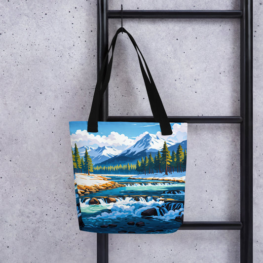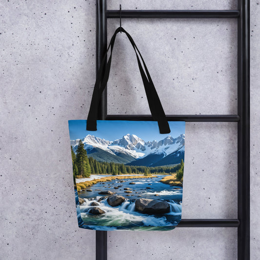 River Though Snowy Mountains Tote Bag
