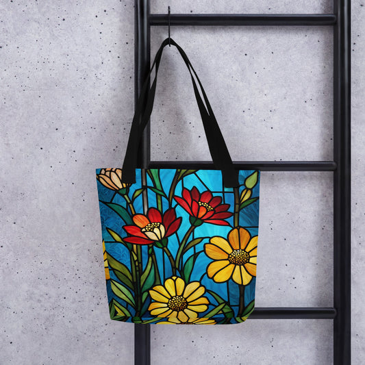 Stained Glass Flowers Tote Bag