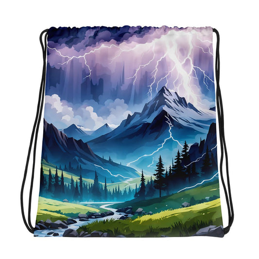 Lightning Over The Mountains II Drawstring Bag
