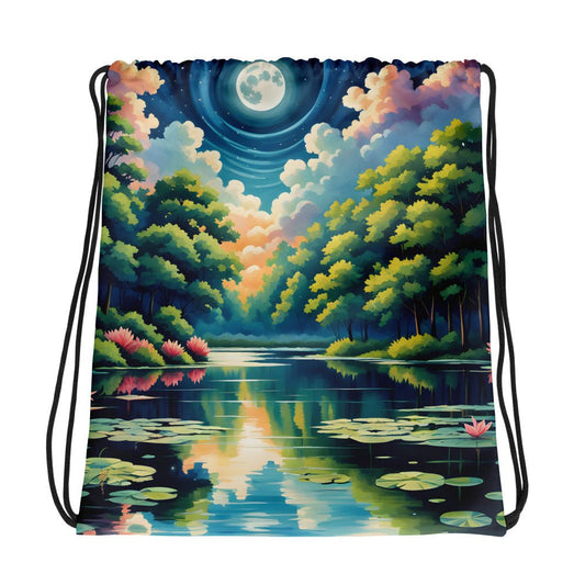 Moon Over Lake II Drawstring Bag