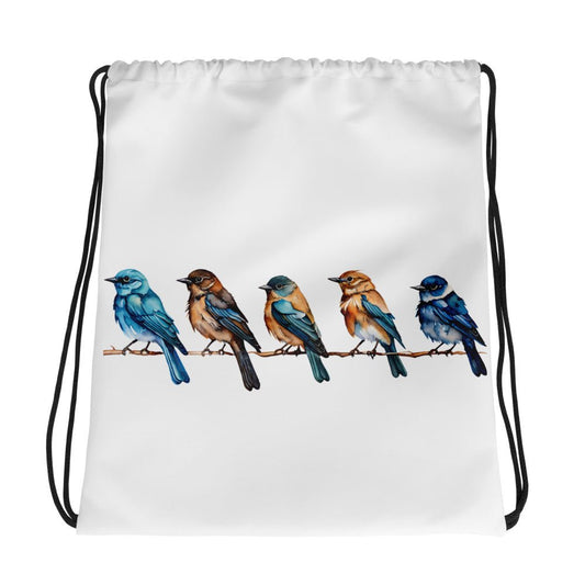 Line Of Birds Watercolor Art Drawstring Bag