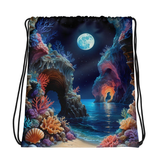 Majestic Beach Cave Drawstring Bag