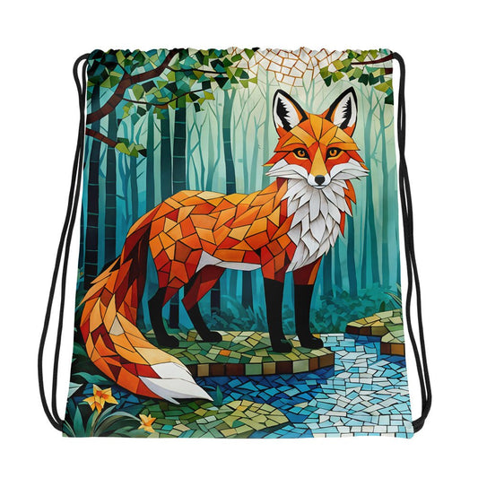 Mosaic Fox By The River Drawstring Bag
