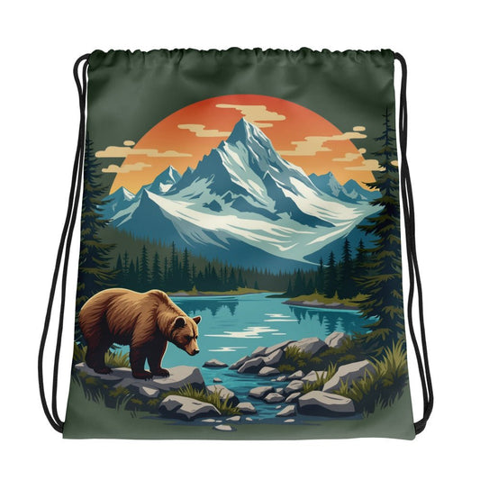 Mountain Bear Drawstring Bag