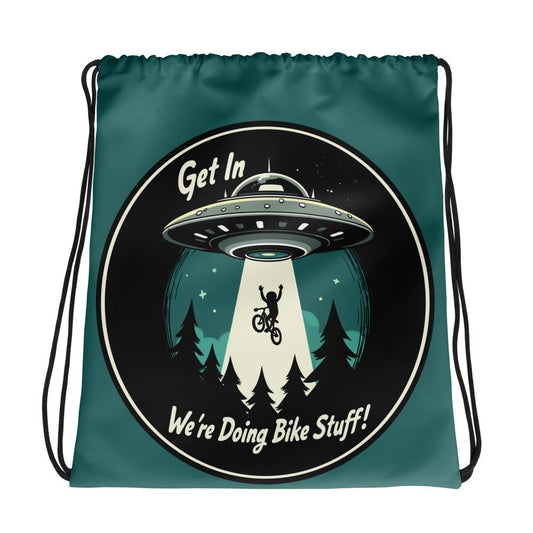 Mountain Biker-UFO Abduction Drawstring Bag
