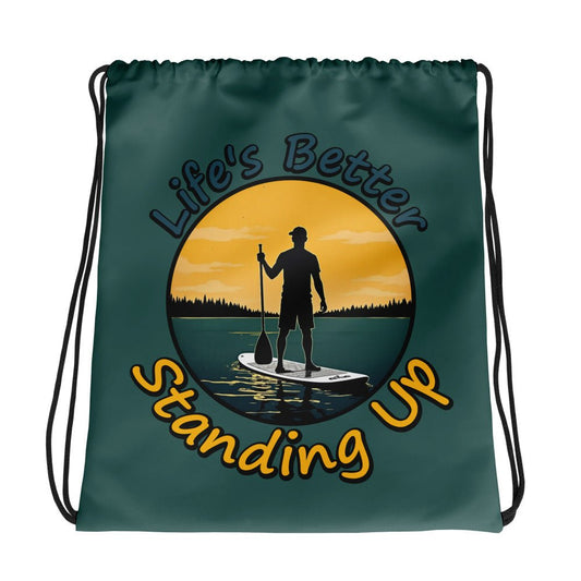 Paddle Boarding "Life's Better Standing Up" Drawstring Bag
