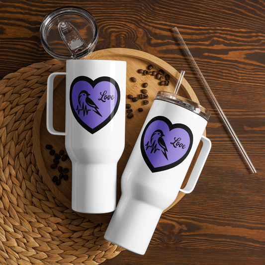 Black Bird Heartbeat Travel Mug With Handle (25 oz and 40 oz)