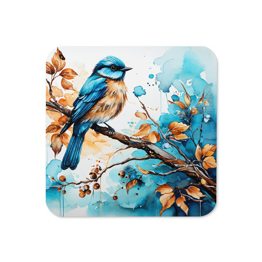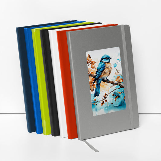 Blue and Tan Bird Perched Hardcover Bound Notebook