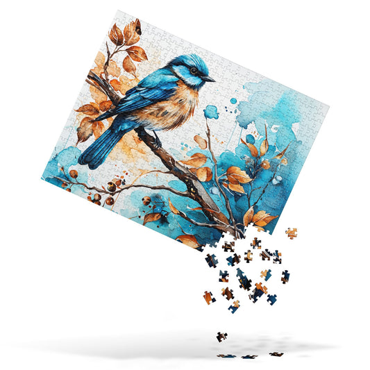 Blue and Tan Bird Perched Jigsaw Puzzle