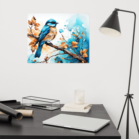 Blue and Tan Bird Perched Poster