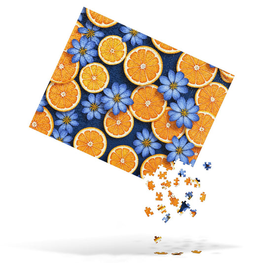 Blue Flowers And Oranges Jigsaw Puzzle