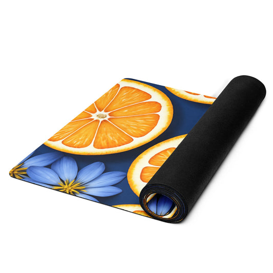 Blue Flowers And Oranges Yoga Mat