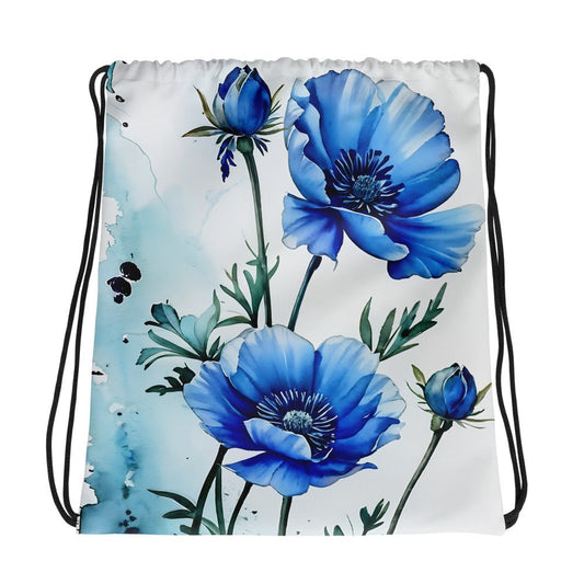 Blue Poppy Drawstring Bag