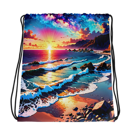 Bright Rocky Shore Drawstring Bag