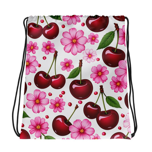 Cherries And Flowers Drawstring Bag