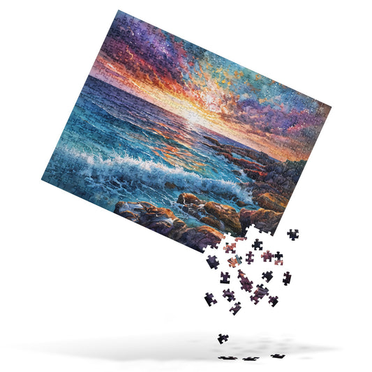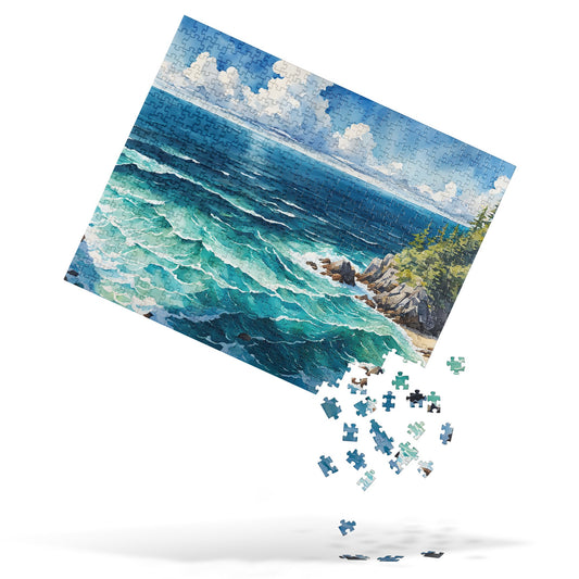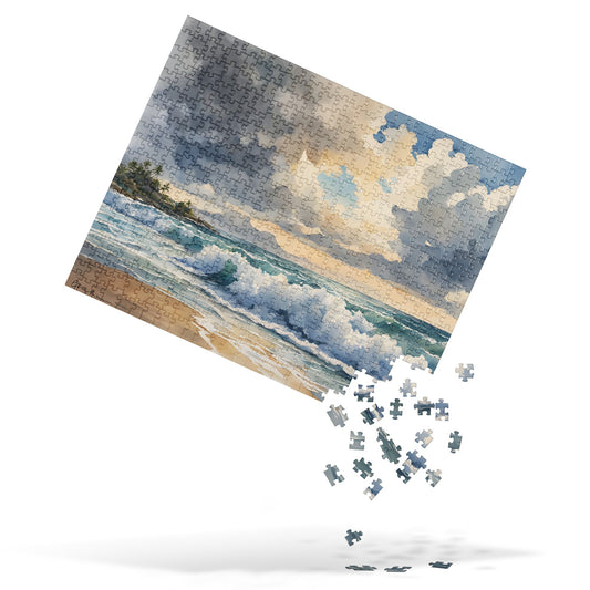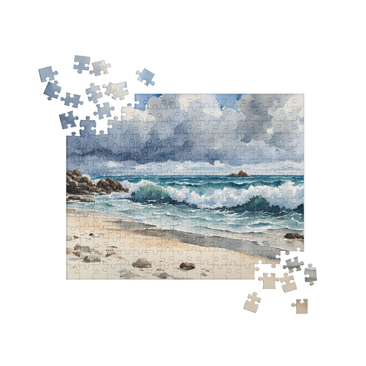 Cloudy Beach Day Watercolor Jigsaw Puzzle