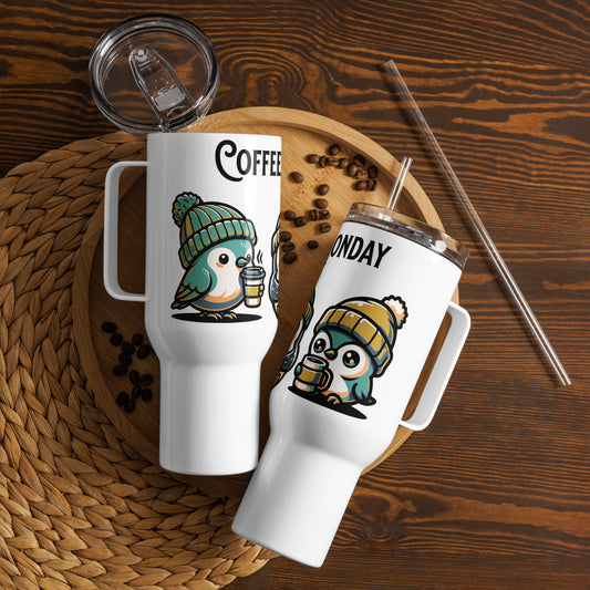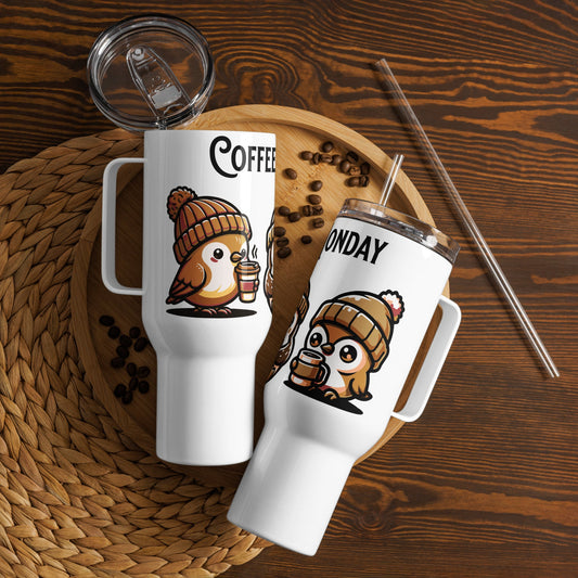 Coffee Monday (Brown) Travel Mug With Handle (25 oz and 40 oz)