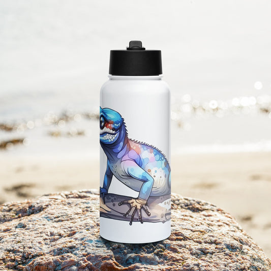Gecko Watercolor Art Stainless Steel Water Bottle With Straw Lid