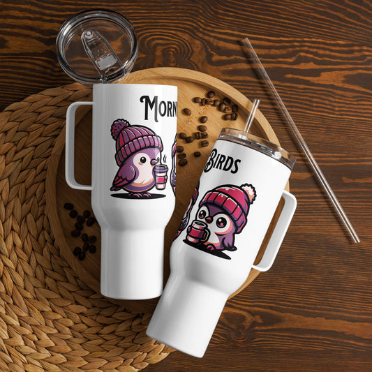 Morning Birds (Purple) Travel Mug With Handle (25 oz and 40 oz)
