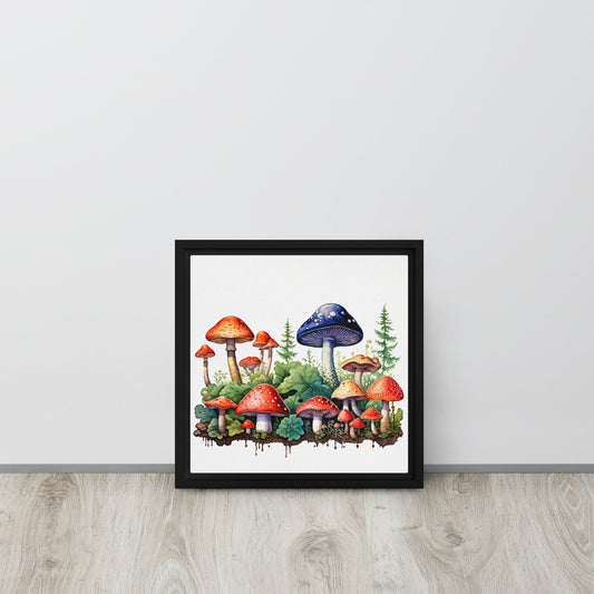 Mushroom Forest Watercolor Art Framed Canvas