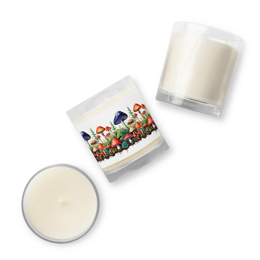 Mushroom Forest Watercolor Art Glass Jar Soy Wax Candle