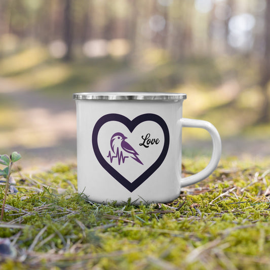 Purple Bird Heartbeat Enamel Mug