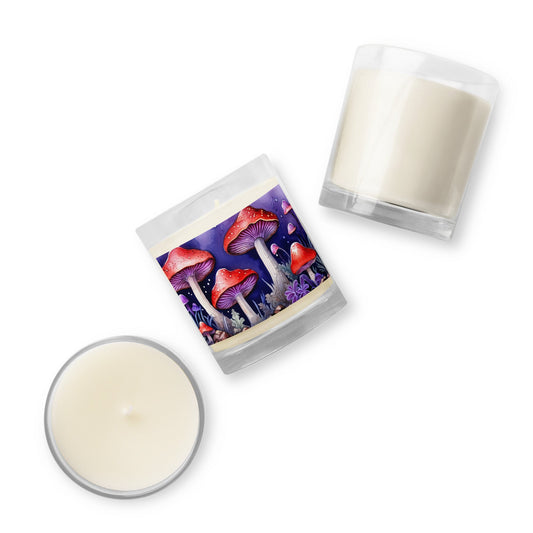 Red and Purple Forest Mushrooms Glass Jar Soy Wax Candle