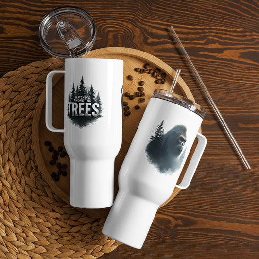 Sasquatch Watching Among The Trees Travel Mug With Handle (25 oz and 40 oz)