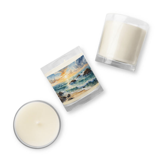 Watercolor Sunset Beach Glass Jar Soy Wax Candle