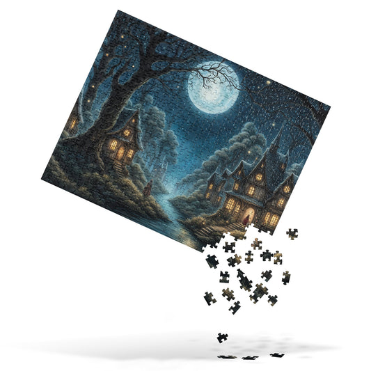 Whimsical Forest Village After Nightfall Jigsaw Puzzle