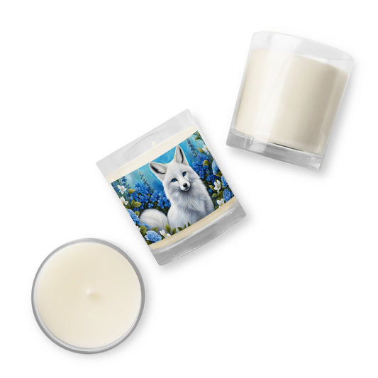 White Fox And Blue Flowers Glass Jar Soy Wax Candle