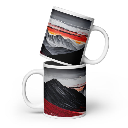 Acrylic Art Mountain Sunrise White Glossy Mug