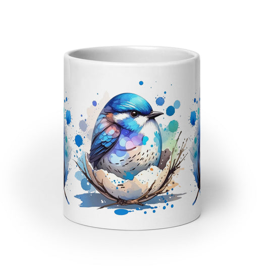 Baby Bird Watercolor Art White Glossy Mug (11 oz, 15 oz, 20 oz)
