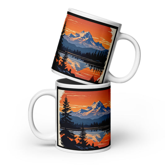 Outlined Orange Sky Over Mountains White Glossy Mug (11 oz, 15 oz, 20 oz)