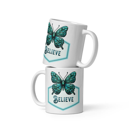 Believe-Butterfly II White Glossy Mug (11 oz. 15 oz, 20 oz)