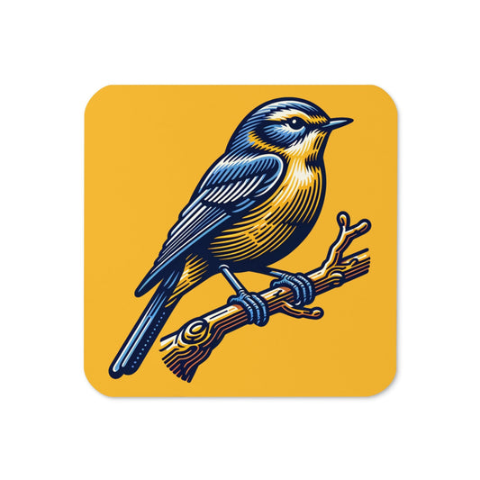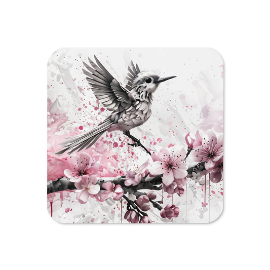 Bird In Cherry Blossom Branch Cork-back Coaster