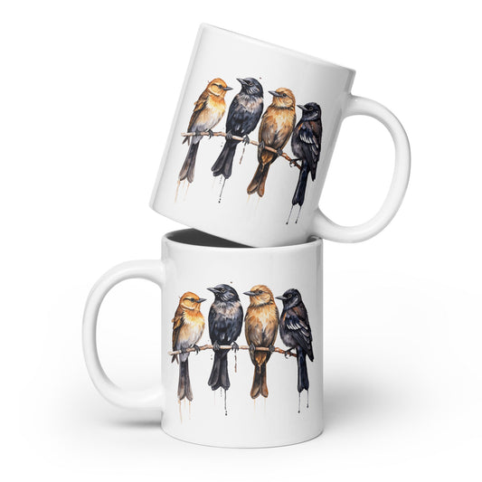 Birds Watercolor Art White Glossy Mug (11 oz, 15 oz, 20 oz)