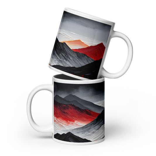 Black and Red Mountains White Glossy Mug