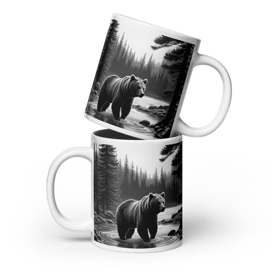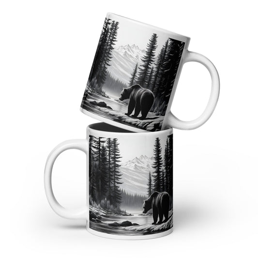 Black and White Bear II White Glossy Mug (11 oz, 15 oz, 20 oz)