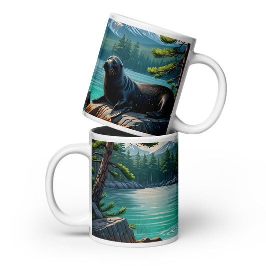 Black Seal On Rock White Glossy Mug