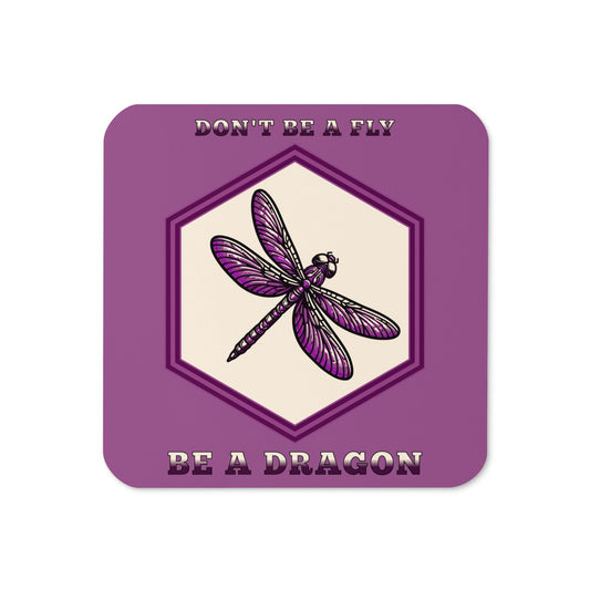 Don't Be A Fly Be A Dragon Cork-Back Coaster