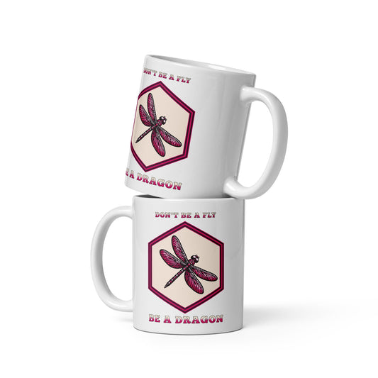 Don't Be A Fly Be A Dragon White Glossy Mug (11 oz. 15 oz, 20 oz)