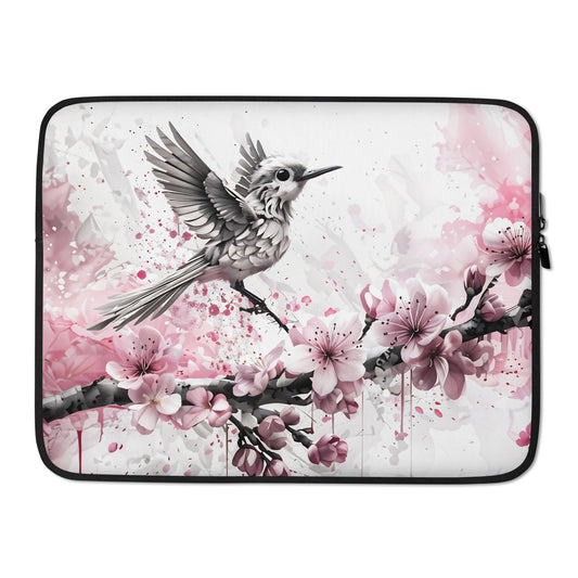 Bird On Cherry Blossom Branch Laptop Sleeve