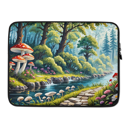 Mushroom Forest Watercolor Art Laptop Sleeve