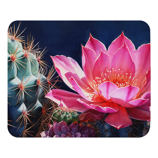 Pink Cactus Bloom Mouse Pad
