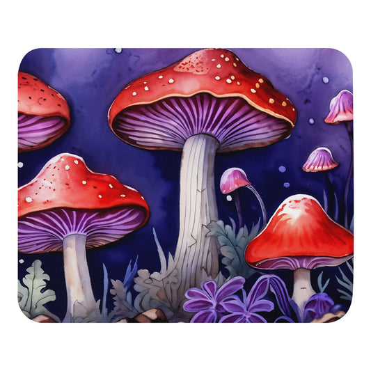 Red and Purple Forest Mushrooms Mouse Pad